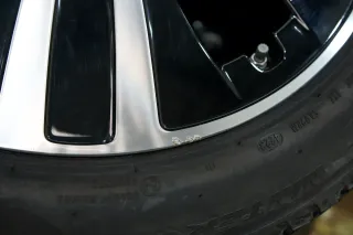 Es ist an einer Felge eine kleinere Beschädigung zu erkennen. Siehe Bilder!